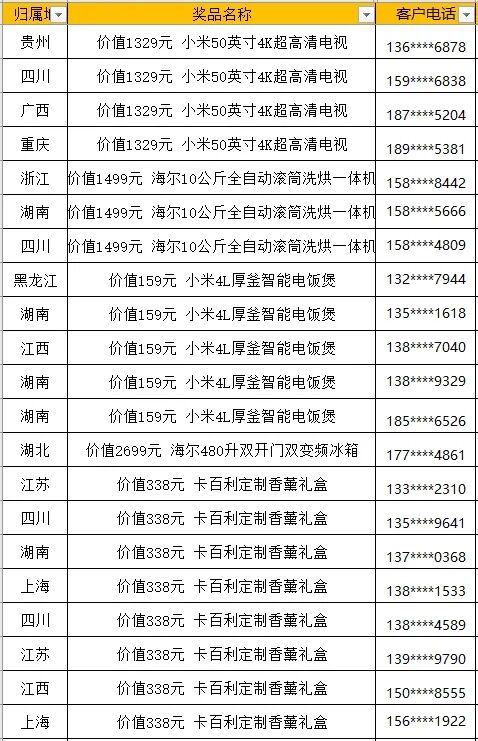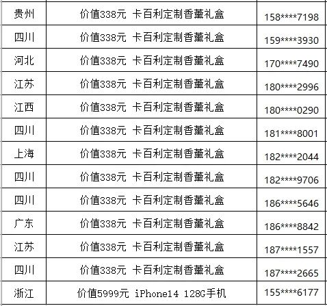 @所有人!卡百利双十一狂欢购活动中奖名单来啦!